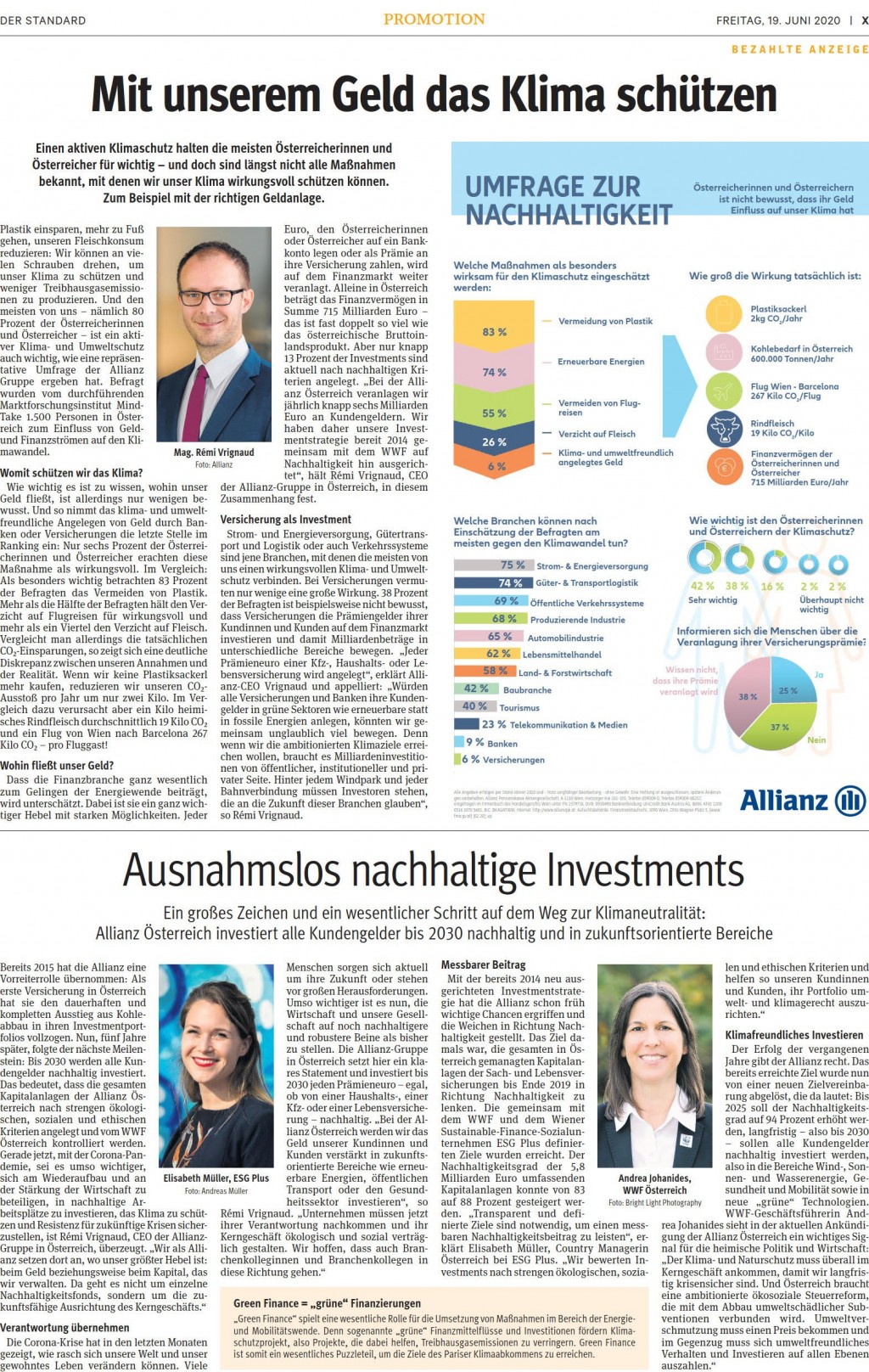Nachhaltige Investments der Allianz Österreich auf Basis von ESG Plus Bewertung, 25.März 2021